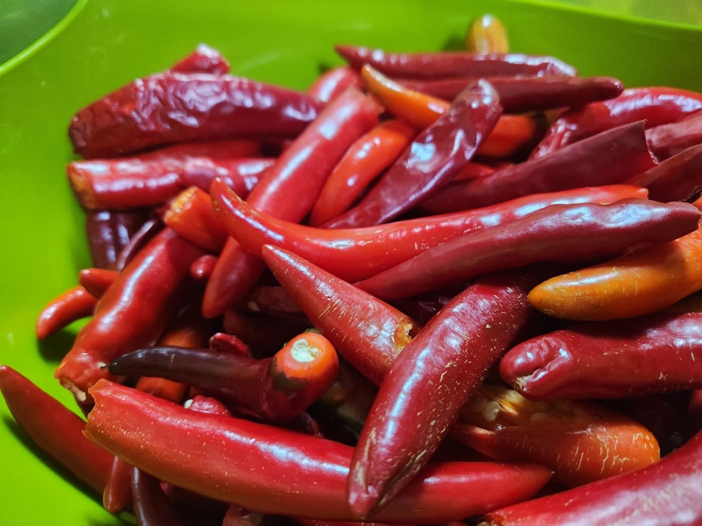 붉은 고추 또는 풋고추 이때 매운맛을 좋아하시면 청양고추로 준비해도 좋습니다. 설탕 또는 알루로스 그리고 믹서기와 용기가 필요합니다.
