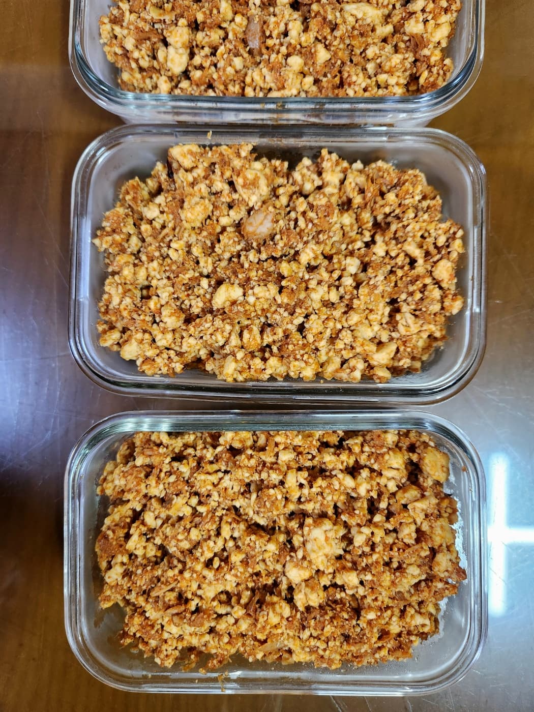③ 강불에서 두부를 저어 가면 고슬고슬할 정도로 수분을 제거해 줍니다