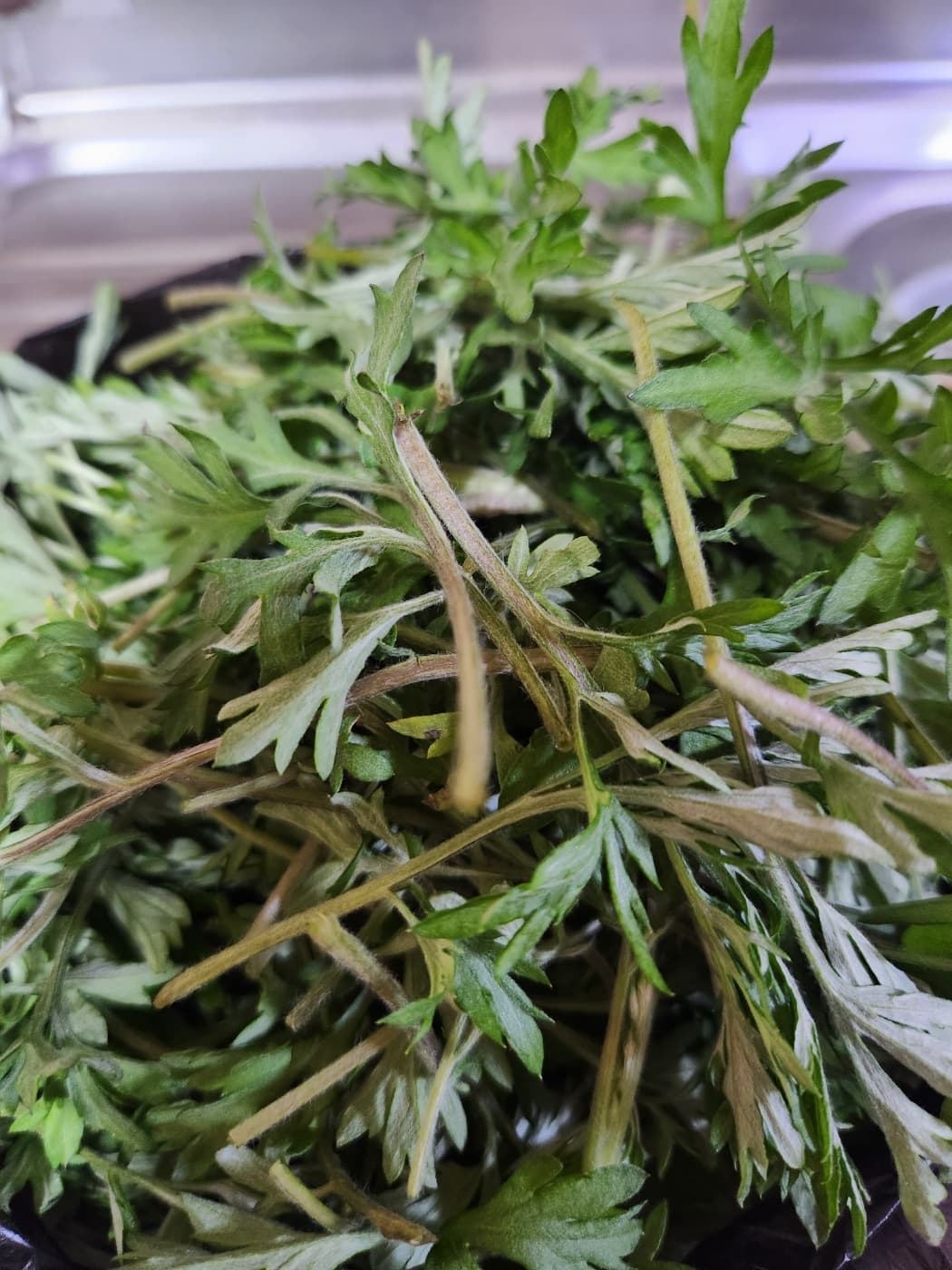 ③ 세척한 쑥도 먹기좋은 크기로 썰어서 준비합니다