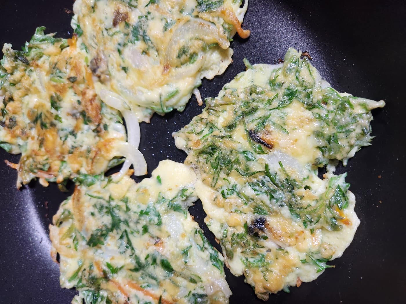 ⑥ 앞뒤가 노릇노릇해지면 기호에 따라 양념장과 함께 먹습니다